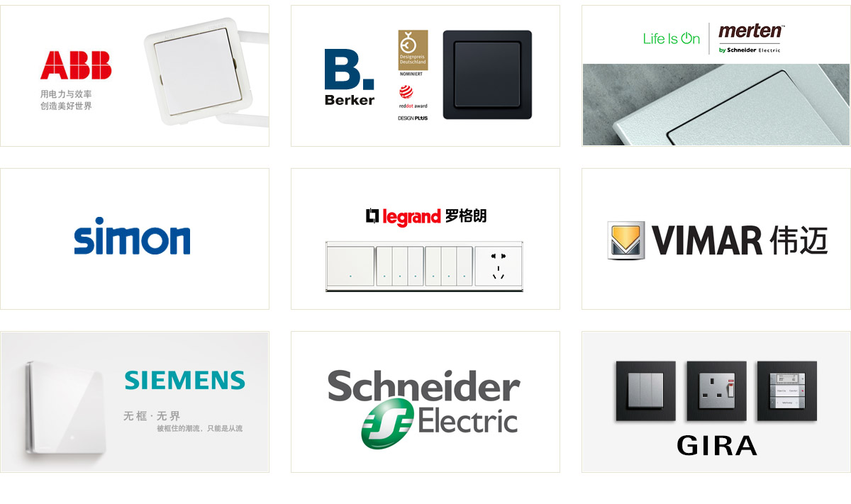 进口开关面板系列 勃朗产品可配套任意品牌开关面板,与国际多种品牌深度合作